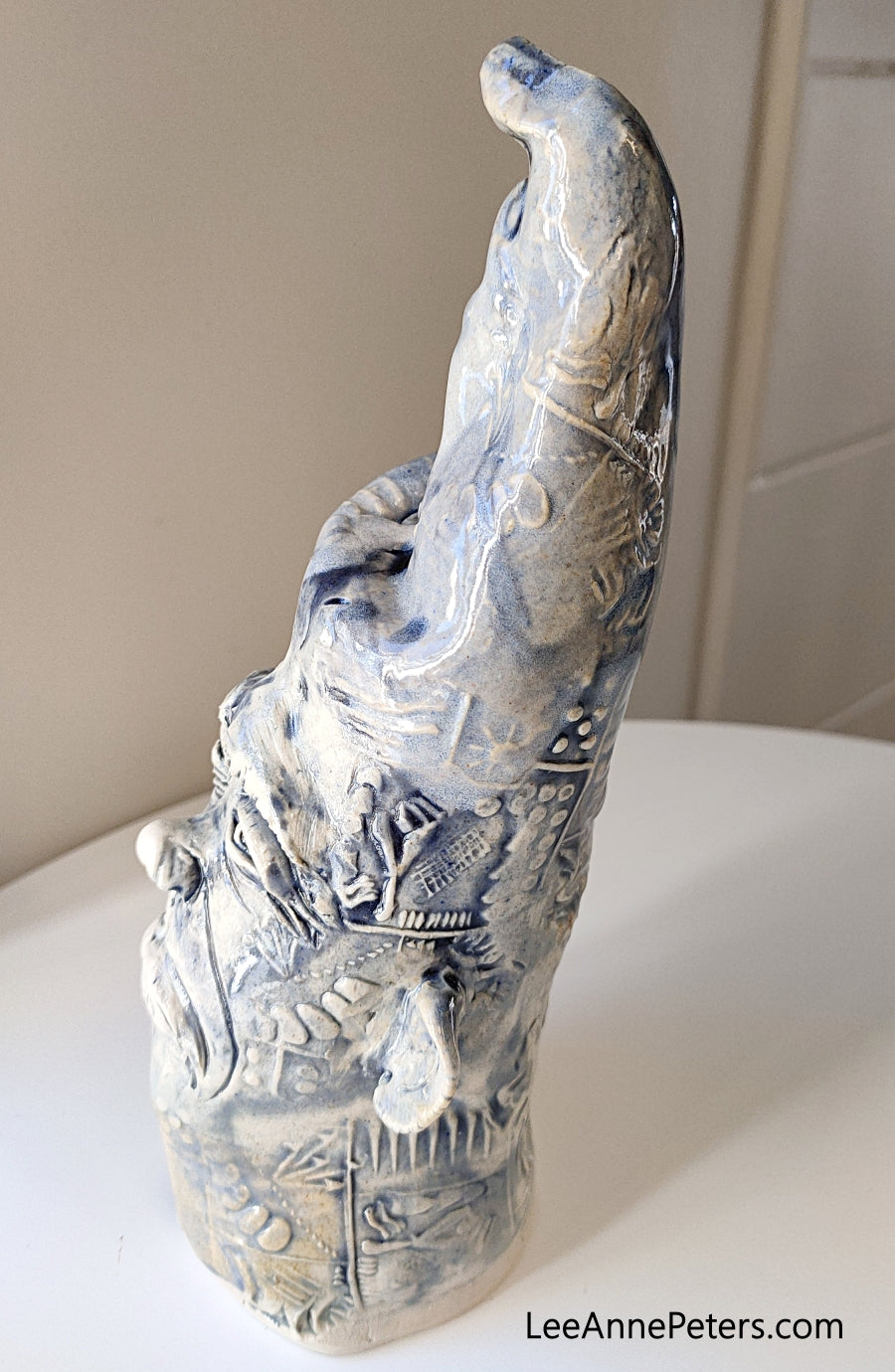 Materials: White stoneware clay hand glazed in a new deep midnight blue wash.